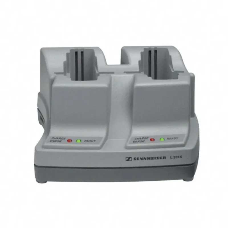 The L 2015 quick-charging unit automatically recharges two Sennheiser BA 2015 batteries. The batteries are either inserted directly into the charger or remain in their bodypack transmitters/receivers of the evolution wireless G3 100, 300 and 500 Series, 2000 Series, Tourguide SK 2020-D and EK 1039. Several charging units can be daisy-chained and powered by one power supply unit.