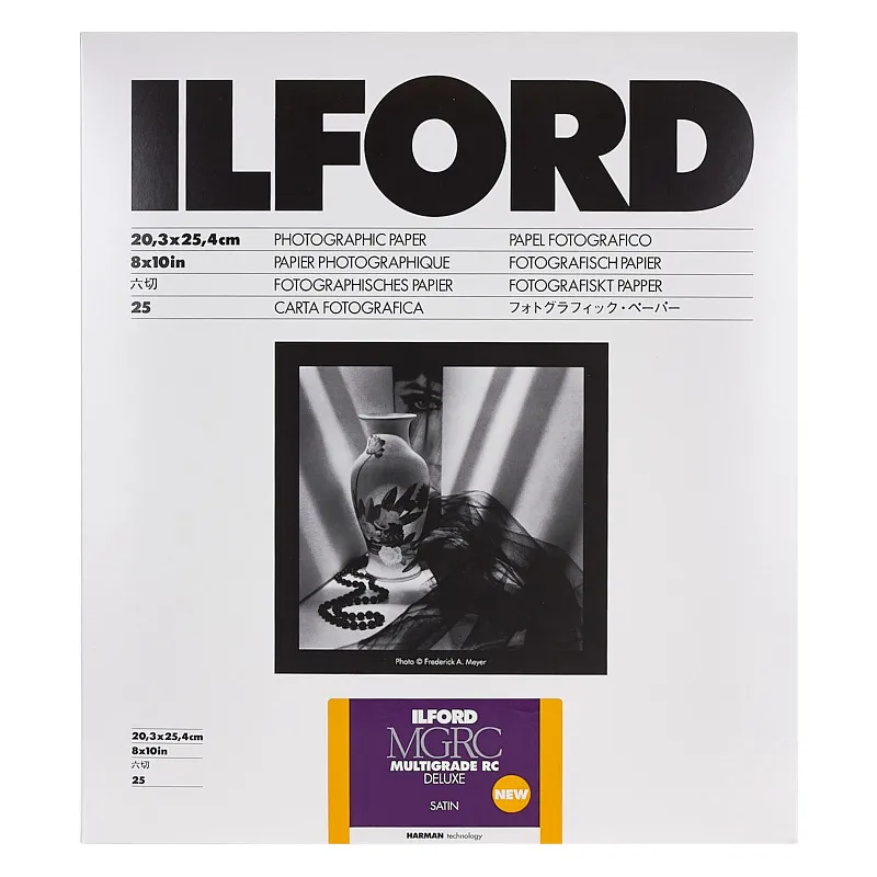 ILFORD MULTIGRADE RC DELUXE ir augstas kvalitātes melnbalta mainīga kontrasta papīrs uz spilgti baltas sveķu pārklājuma pamatnes. Tas nodrošina pilnu toņu diapazonu un izcilu attēla kvalitāti visā plašajā kontrasta pakāpju diapazonā no 00 līdz 5.