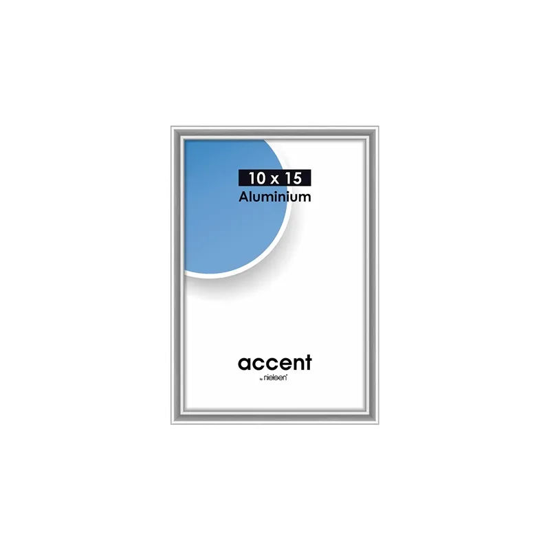 The Nielsen Photo Frame 51223 Accent Silver 10x15 cm is a silver picture frame suitable for 1 picture. You can insert a picture of 10x15 cm in this frame. The picture frame is characterized by its aluminium look. The total dimensions, including the frame, are 12x17 cm.