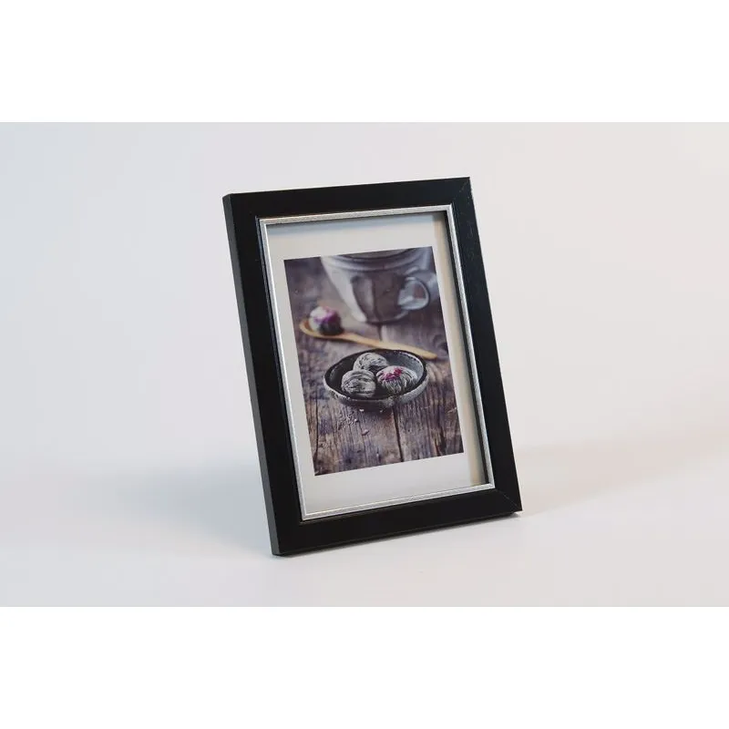 20mm wide wooden frame with a inner edge of brushed silvercolour.