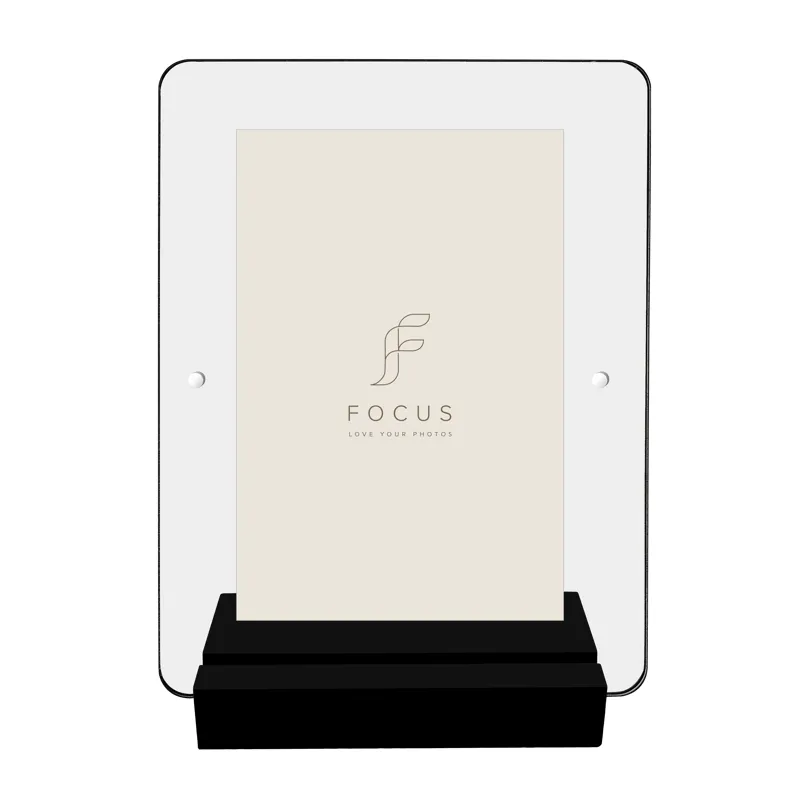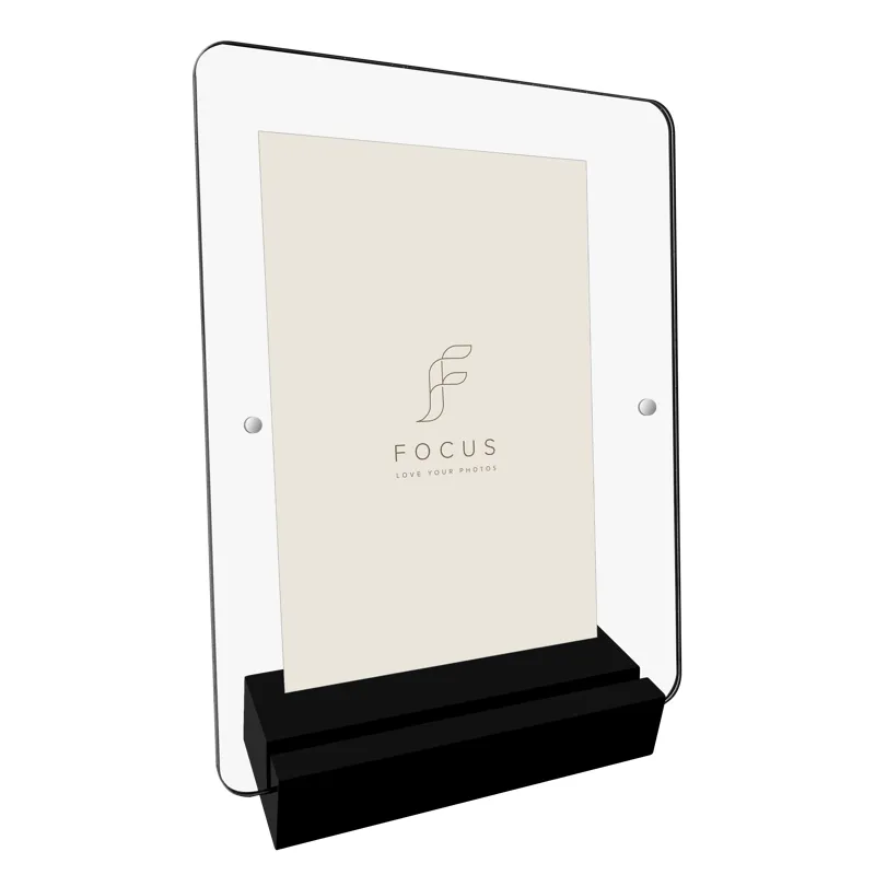 Viegli novietojiet savu iecienītāko fotogrāfiju vai mākslas darbu starp akrila paneļiem un ievietojiet to koka pamatnē - nav nepieciešami rīki vai montāža. Iedobums cietajā koka blokā droši tur akrilu, nodrošinot stabilu izstādi, nesabojājot attēlu.