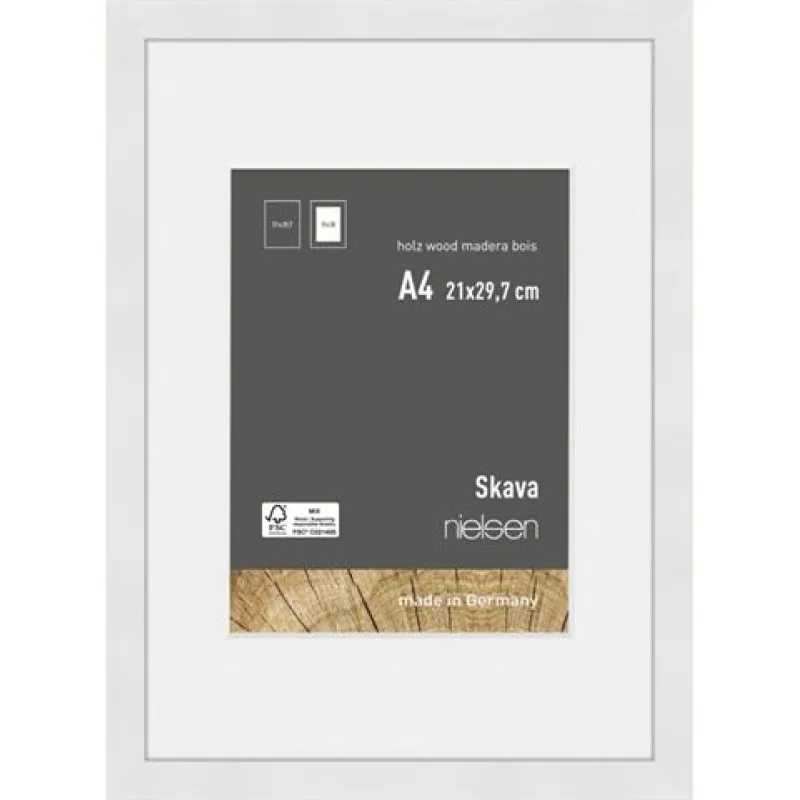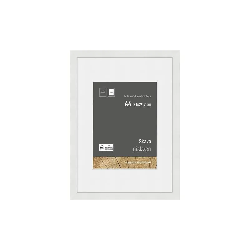 Nielsen Photo Frame 6321101 Skava White A4 21 x 29,7 cm ir balts fotorāmis, kas piemērots 1 attēlam. Šajā rāmītī var ievietot 21 x 29,7 cm lielu attēlu. Attēlu rāmim ir raksturīgs koka izskats. Kopējie izmēri, ieskaitot rāmi, ir 23x32 cm.