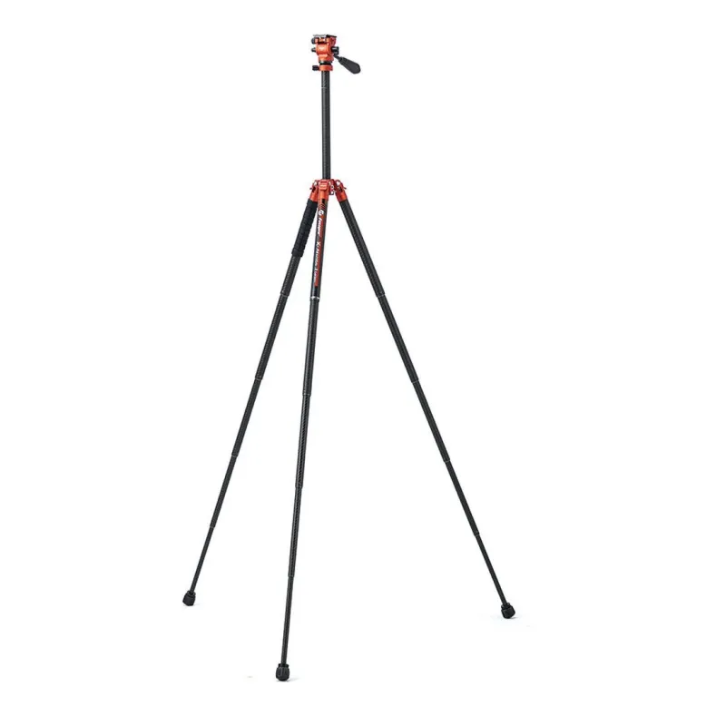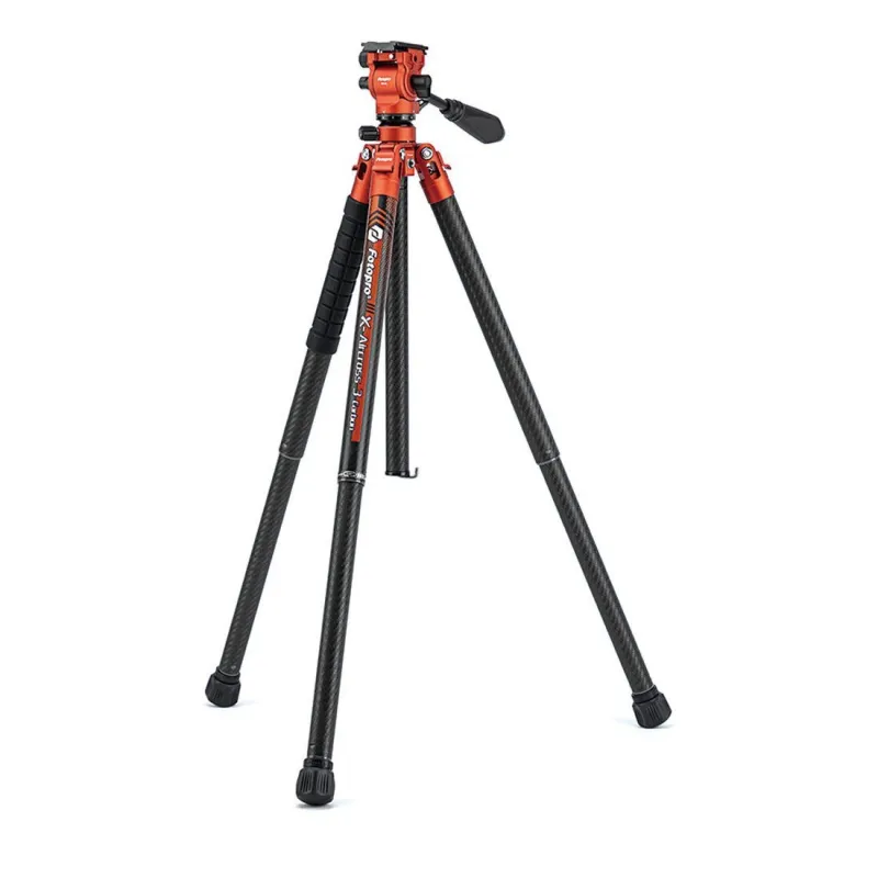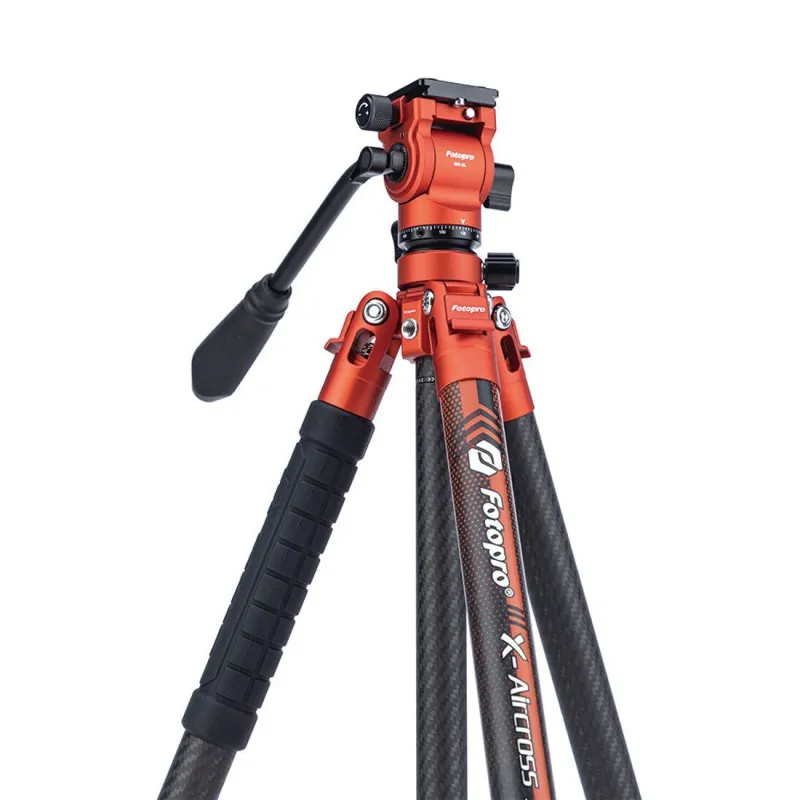 Uzņemiet stabilus attēlus ceļojuma laikā un nodrošiniet vienmērīgu slīpēšanu un panoramēšanu ar šo liesmas oranžās krāsas X-Aircross 3 Lite Video Carbon Fiber statīvu no Fotopro. Portatīvais X-Aircross 3 Lite Video, kura kopējais svars, ieskaitot fluīdu galvu, ir 2,3 kg, un tas ir salokāms līdz tikai 17,9", tāpēc ir ideāli piemērots ceļošanai. Tas var noturēt līdz 11 kg smagu kameru.