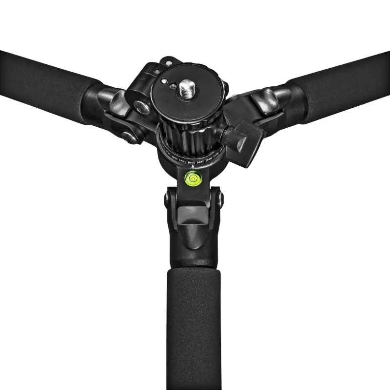 A bubble level in the tripod shoulder makes it easy to adjust the alignment of the tripod, and the intelligent construction of the tripod shoulder ensures neat, cushioned panoramic panning shots, even without the tripod head.
