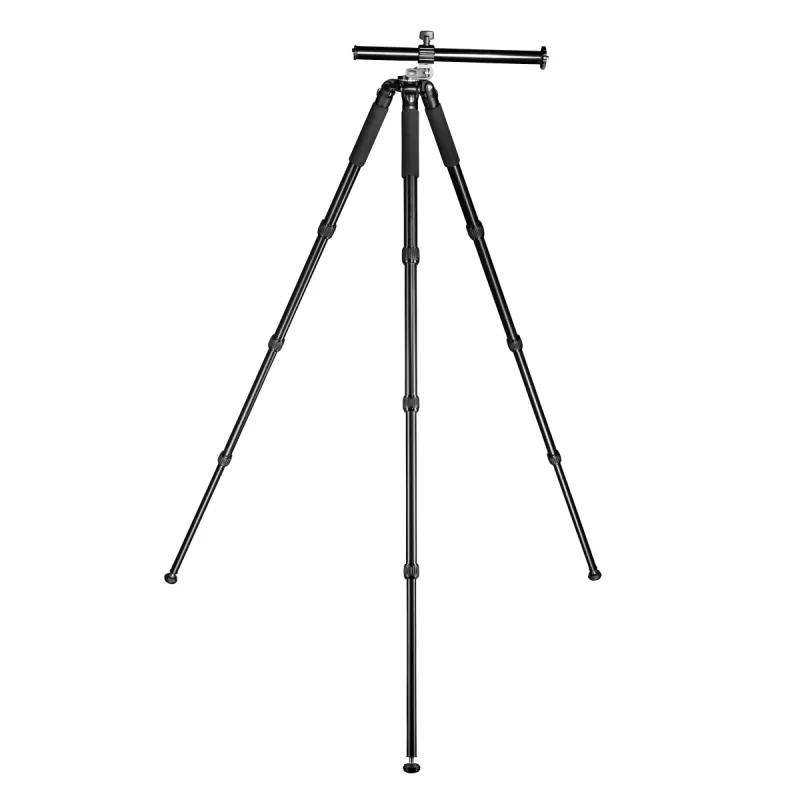 You will thoroughly enjoy using this tripod! The angle of the tripod legs can be adjusted using the ergonomically shaped locking clips at three levels. Large tripod legs made from aluminium with diameters of 28, 25, 22 and 19 mm ensure stability. Thanks to the integrated spikes and the safety hook, it can be used on slippery terrain such as slush, snow or ice.