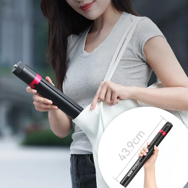 Nospiediet pogu apakšā, lai izstieptu statīvu līdz maksimālajam garumam 1530 mm dažu sekunžu laikā.