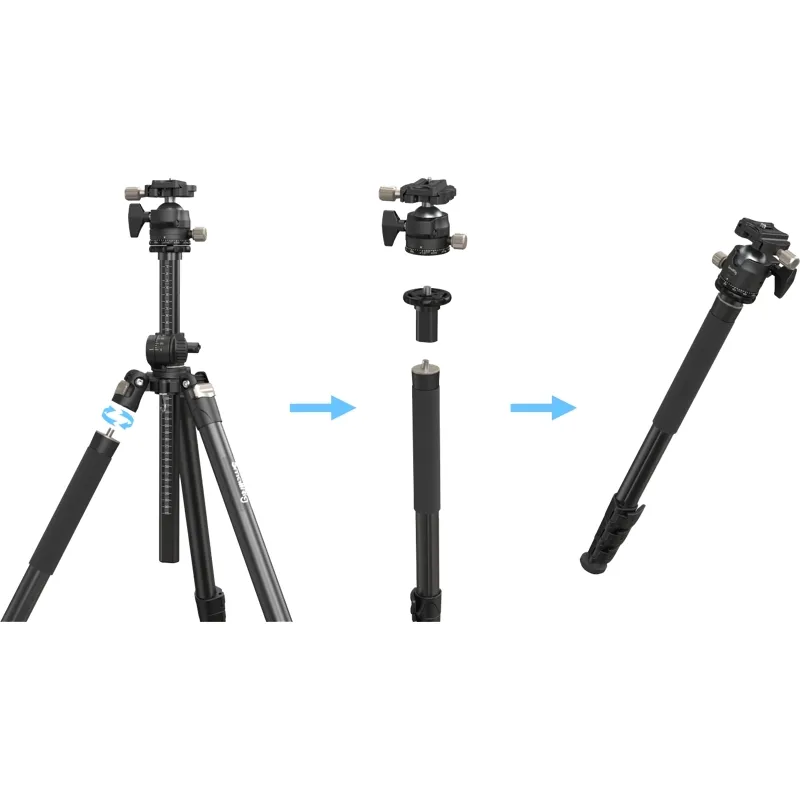 By removing one of the legs and attaching the included ballhead to it, you can easily turn the stand into a single-leg stand.