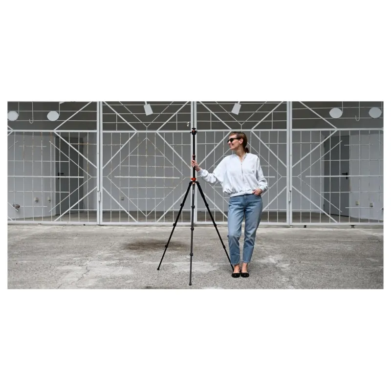 Camrock Wanderer T42 statīvs ar AL-4AS bumbu galvu ir daudzfunkcionāls risinājums fotogrāfiem un videogrāfiem, apvienojot portabilitāti, stabilitāti un lietošanas ērtumu. Tas piedāvā maksimālo darba augstumu 175.7 cm ar transporta garumu 42.8 cm un sver 1.5 kg. Alumīnija konstrukcija, 12 kg statīva slodzes kapacitāte un bumbu galva ar burbuļa līmeni nodrošina precīzu kadra uzstādīšanu gan ārā, gan studijā.