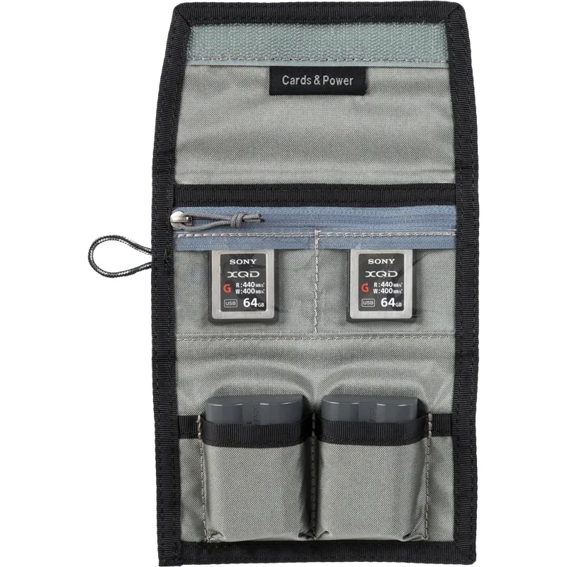 Ērts salokāms maksts, kurā vienā ir gan atmiņas kartes, gan baterijas. Nevajag vairs rakņāties somā, meklējot vienu vai otru! Viegli iekļaujas kabatā vai piestiprināms pie jostas vai somas.