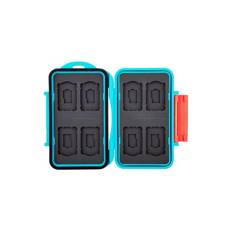 The JJC MC-SDMSD16 Memory Card Case is a strong and splash-proof storage solution for eight Nintendo Switch Game Cards and eight micro SD memory cards. The moulded rubber interior absorbs any shocks and ensures the memory cards stay in position when you put the Multi-Card Case in your bag. It also protects your precious cards from dust and other debris. The ergonomic locking system is easy to open and close again.