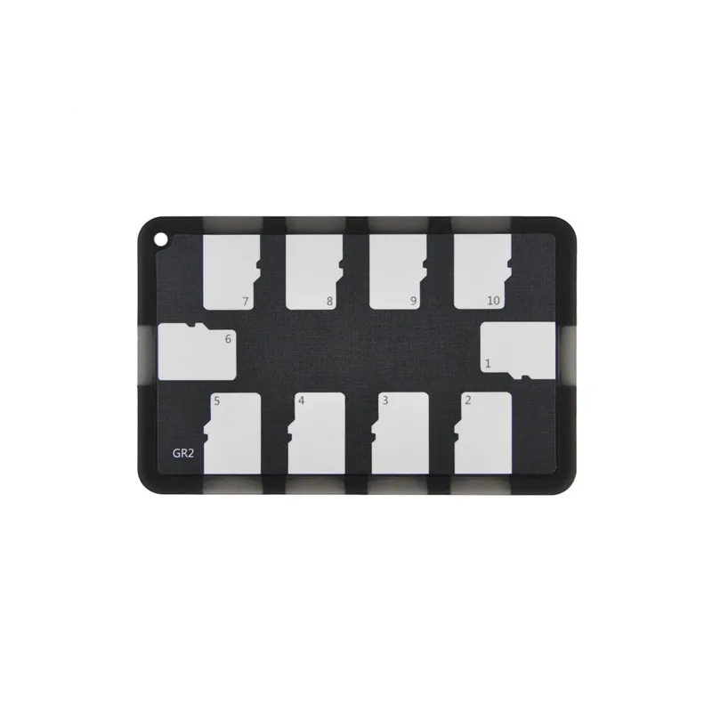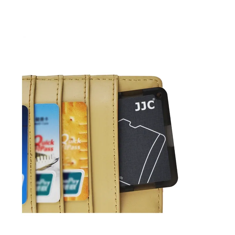 The JJC MCH-MSD10GR Memory Card Holder Black is extremely handy when you use multiple memory cards and need an easy and compact storage place for them. The card holder has the size of a bank card and offers space for up to ten micro SD cards thanks to pre-shaped cutouts. These keep your cards securely in place, yet they can be easily taken out again. Due to its compact size, you can simply store the JJC Memory Card Holder in the same place as your bank cards and/or your driving licence. You can even keep it on your key ring through the hole in the housing.