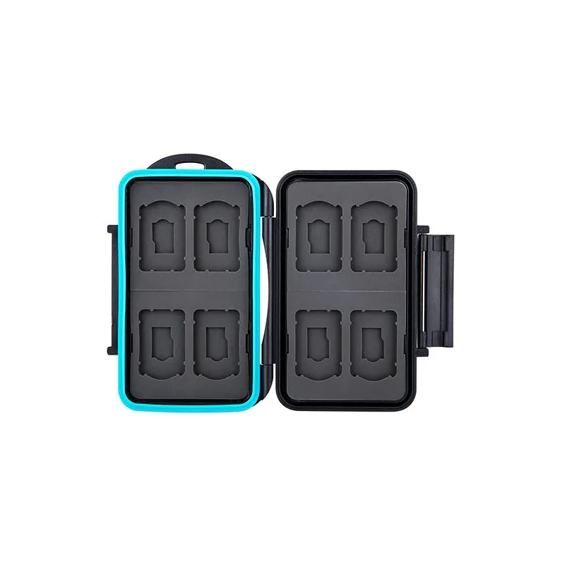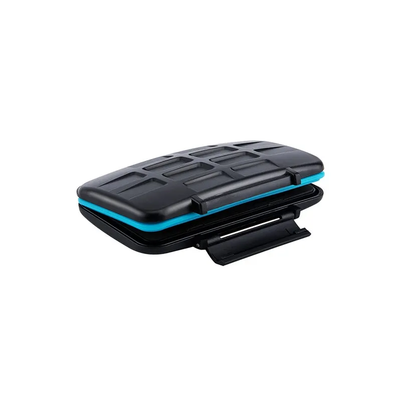 The JJC MC-SDMSD16 Multi-Card Case is a strong and splash-proof storage case for eight Nintendo Switch Game Cards and eight micro SD memory cards. The moulded rubber interior absorbs any shocks and ensures the memory cards stay in position when you put the Multi-Card Case in your bag. It also protects your precious cards from dust and other debris. The ergonomic locking system is easy to open and close again.