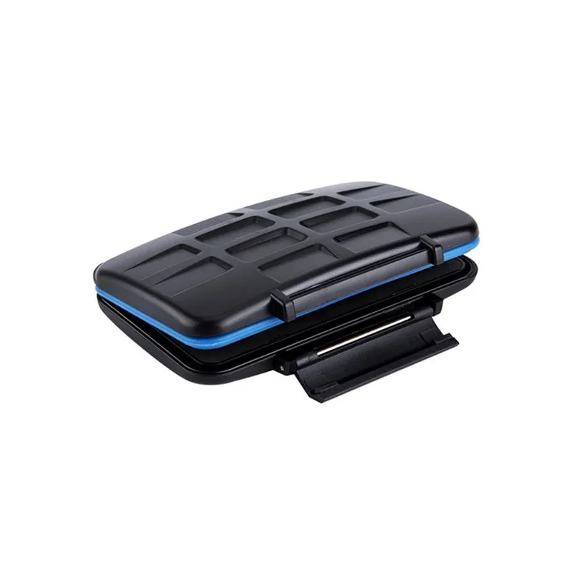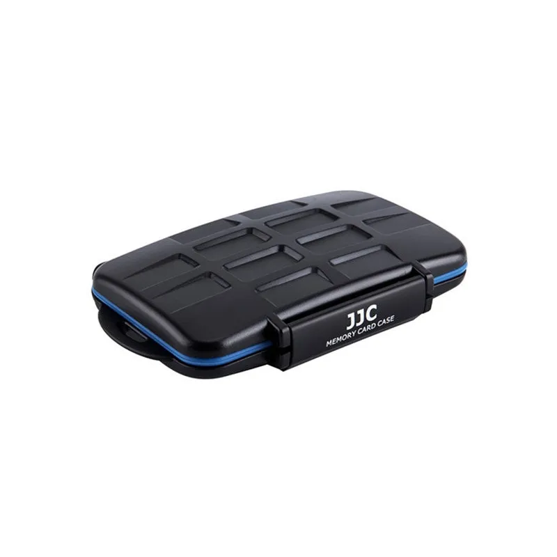 The JJC MC-STMQ13 Memory Card Case is a strong and splash-proof storage box for three XQD memory cards or CFexpress Type B, two SD memory cards, two micro SD memory cards, two SIM cards, two micro SIM cards and two nano SIM cards. The molded rubber interior absorbs any shocks and SIM cards stay in position if you put the Memory Card Case in a bag or pocket. Your valuable cards are also well protected from dust and other dirt. The ergonomic locking system is easy to open and close again.