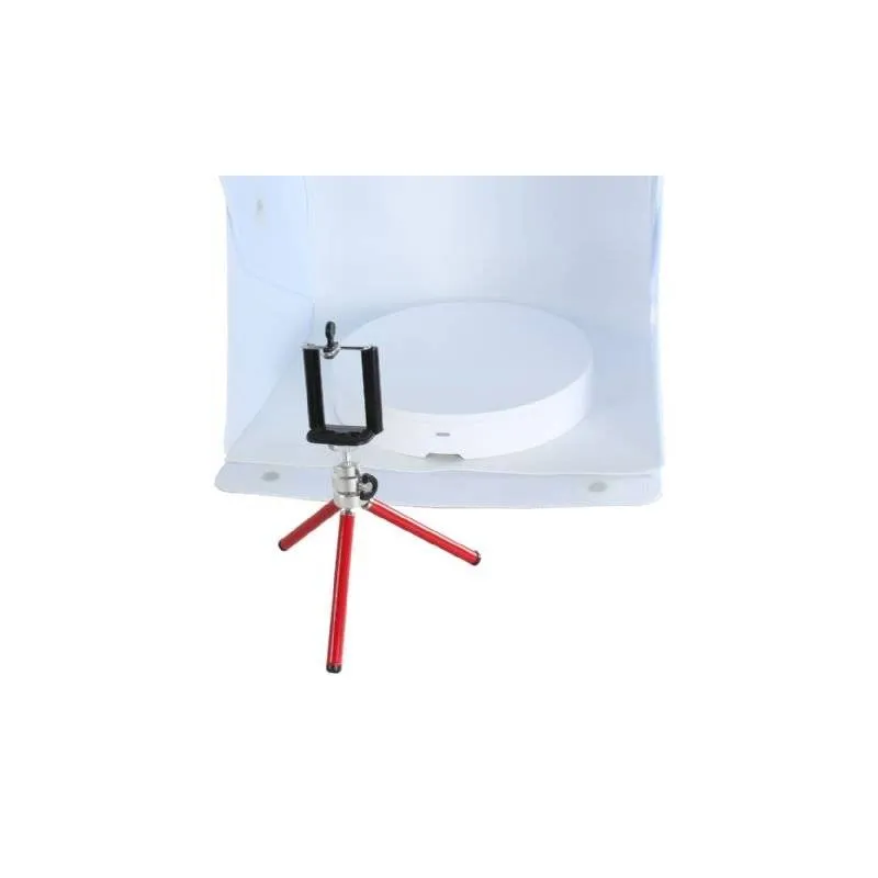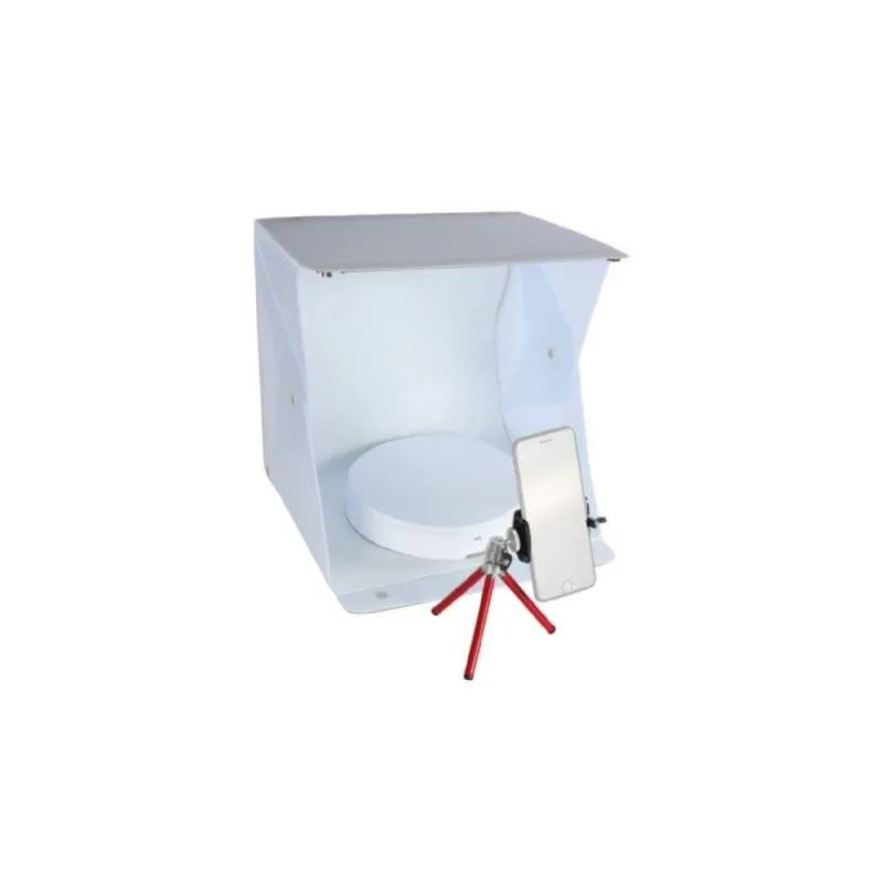 ;You can control the Foldio360 with an app on your smartphone or with the infrared function of your DSLR camera. This offers new possibilities to capture an object in a fast, easy and fun way. To achieve an equal white background, you can place the Foldio360 in the photo tent. On the backside of the Foldio360 you can find a 5700K Halo Edge LED light, which makes sure there is a seamless transition between the turntable and the background of the photo tent.