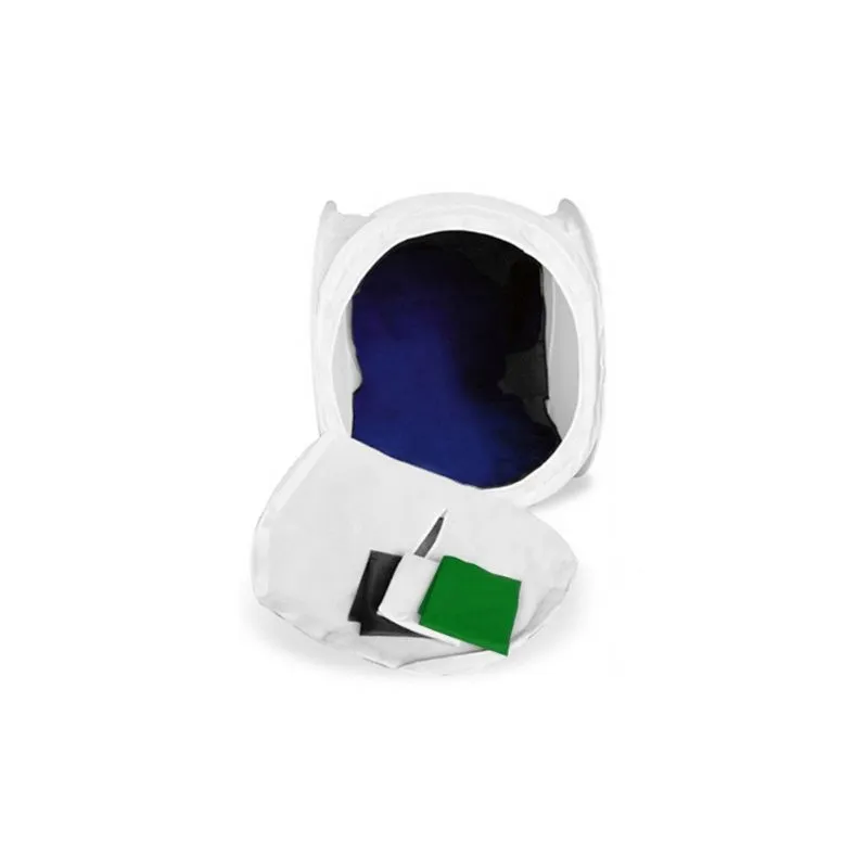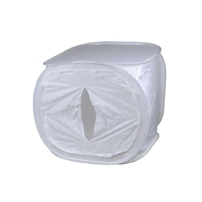 Falcon Eyes gaismas teltis ir īpaši paredzētas tādu produktu fotografēšanai kā stikls, sintētika, juvelierizstrādājumi, pulksteņi, keramika un elektronika. Gaismas telts ir salokāma un ar komplektā iekļauto futrāli ērti paņemama līdzi uz vietas. Izkliedētais materiāls ir ļoti piemērots traucējošo atspīdumu samazināšanai un vienmērīgi izkliedē gaismu. Gaismas telts materiāls nodrošina neitrālu krāsu temperatūru. Telts priekšpusi var aizvērt ar komplektācijā iekļauto audumu, kuru var nostiprināt ar Velcro. Audumā ir atvere kameras objektīvam. Ideālam apgaismojumam kastīti var izmantot kopā ar parasto dienasgaismu, nepārtrauktām lampām vai studijas zibspuldzēm.