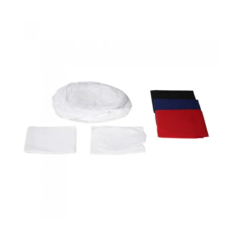 Telts ir salokāma nelielā komplektā, lai atvieglotu uzglabāšanu un transportēšanu. Turklāt komplektā ir iekļauti 4 foni (balts, melns, zils, sarkans), lai labāk izceltu fotografējamo objektu un padarītu fotografēšanas displeju vēl pievilcīgāku.