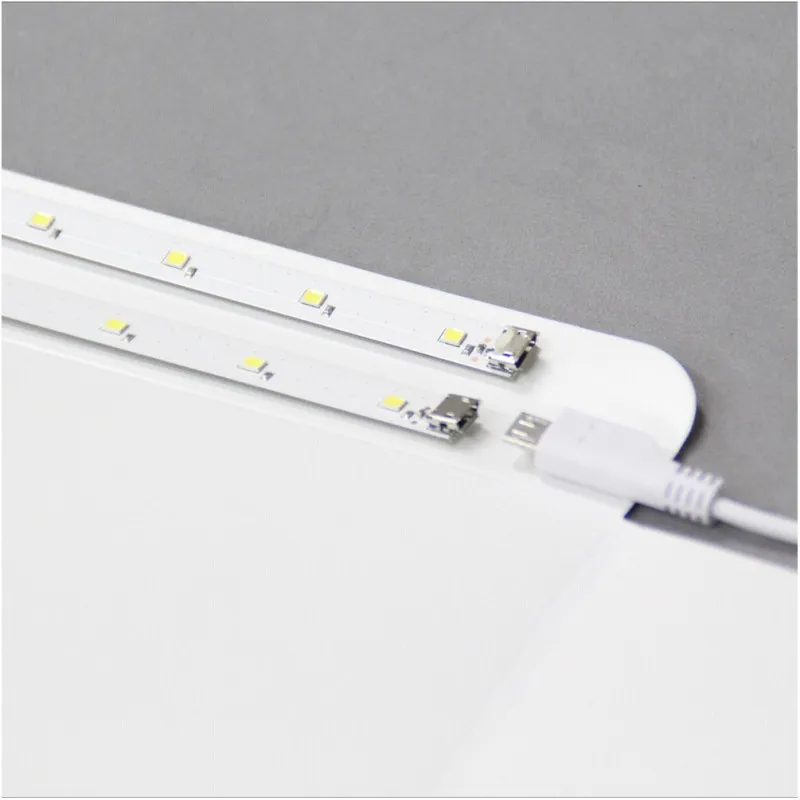 At the top of the Foldio1 there are two LED strips, which are both made up of 27 strong LEDs. The color temperature of 5700K ensures a neutral color reproduction. With two knobs you can adjust the brightness of the light. The LED lighting works on AC power, for which the required power adapters for worldwide use are included.