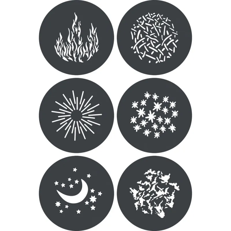Godox GP GS1 GOBO komplekts MG1200Bi ir piederums, kas īpaši paredzēts lietošanai ar Godox MG1200Bi prožektora stiprinājumu.