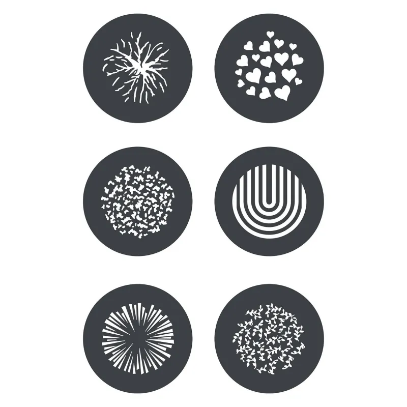 Gobām ir 6 dažādi raksti, kurus var novietot prožektora priekšā, lai projicētu noteiktas formas, rakstus vai faktūras.