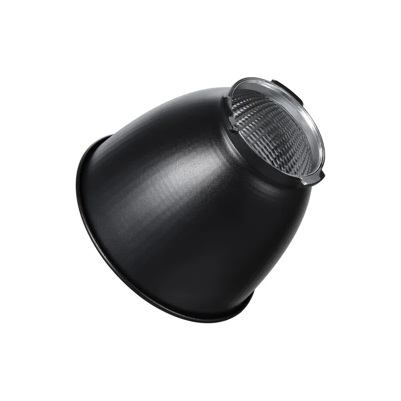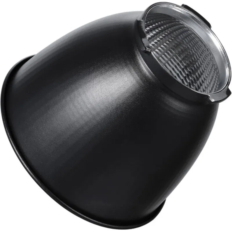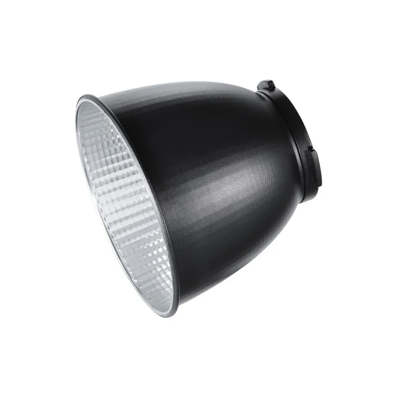 The Godox RFT-22 Reflector 60° for ML60 LED video light is designed for use on this monolight-style armature. The reflector offers a medium spread. It has a facetted silver interior that maximizes light output. The reflector has a Bowens mount making it compatible not only with the ML60, but with all lamps that have this popular mount.