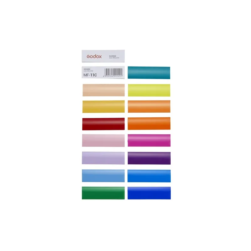 This MF-11C Color Effects Set from Godox for the MF12 Marco Flash contains an assortment of colored gel filters to expand your creative capabilities.