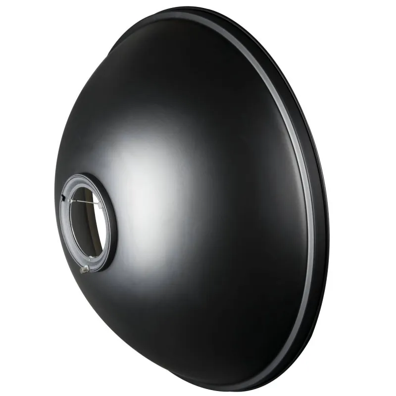 The walimex Beauty Dish universal is a highlight for portrait and beauty photography. It provides a round, natural lighting of the eyes. It closes the gap of the hardness of the light between the softbox and a standard reflector.