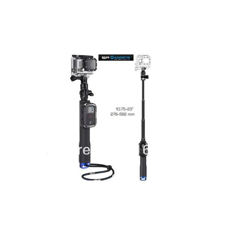 Rokā turams monopods ar stiprinājumu GoPro pultij. Paredzēts ērtākai GoPro kameras lietošanai un iespējai uzņemt video no dažādiem skatupunktiem.