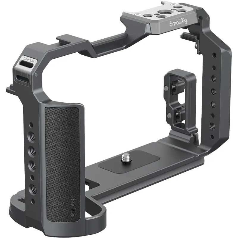 Turklāt ir siksnas ligzda, kas ir saderīga ar SmallRig rokas siksnu 3848 vai plecu siksnu 2428, QD ligzda, kas atbalsta QD ātrās noņemšanas plecu siksnu 4118, un Arca-Swiss ātrās noņemšanas plāksne, kas nodrošina saderību ar Arca tipa statīviem un DJI RS 2 / RSC 2 / RS 3 / RS 3 / RS 3 Pro kardāniem.