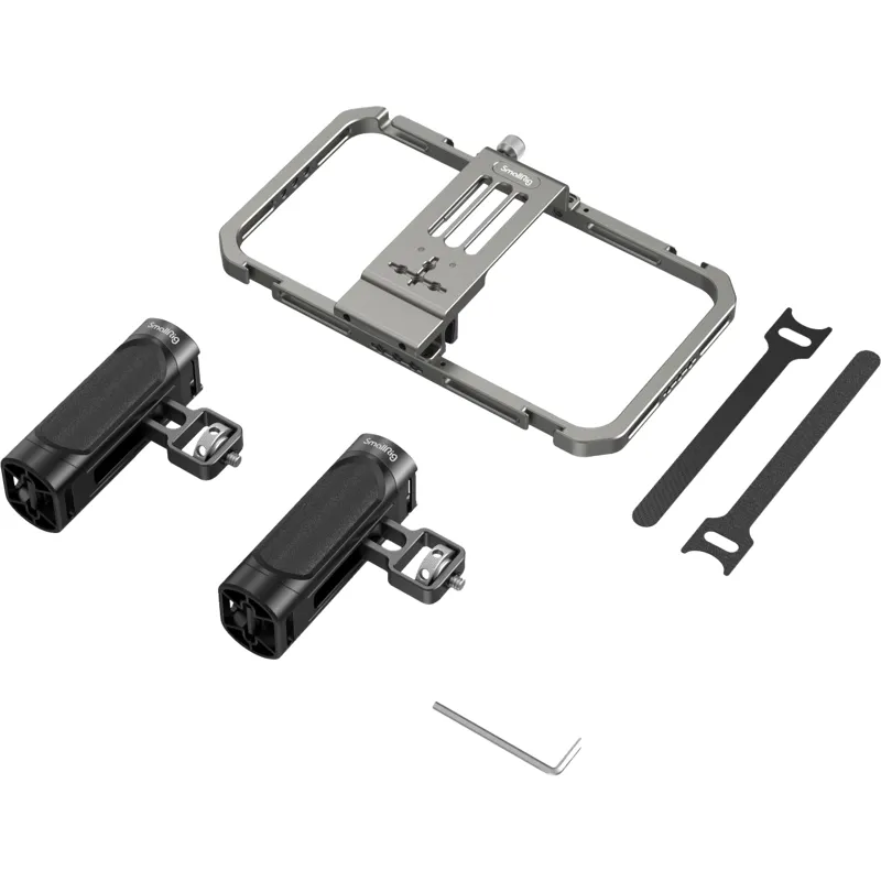 SmallRig All-in-One Video Kit Basic (2022) 4121 proves a lightweight solution to phone vlogging and live-to-stream. The kit includes, among others, a universal phone cage, two side handles, and cable ties. The cage comes with multiple 1/4''-20 threaded holes and cold shoes to allow a mix of accessories, hence more creativity and fun for video creators.