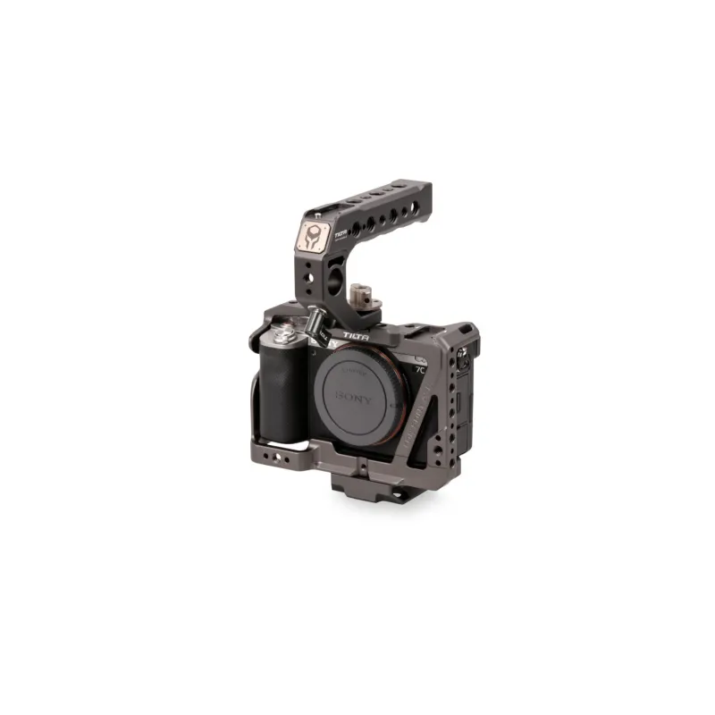 This camera cage provides complete protective armor for the Sony a7C camera.