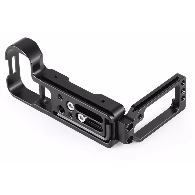 It features a sensor centering line on each axis to align the camera on a tripod head and maintains complete access to the camera's battery and ports.