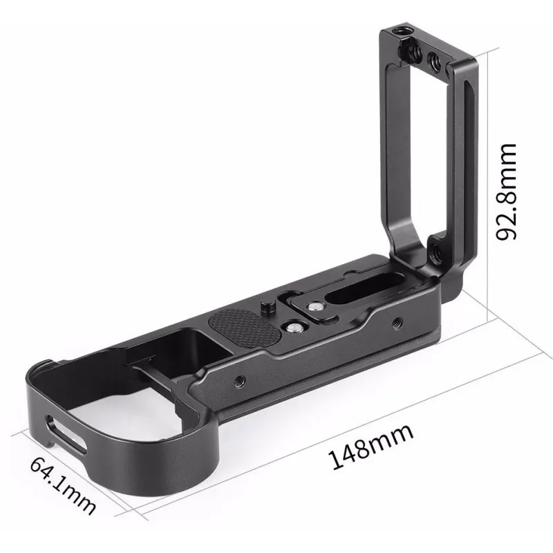 Both the base plate and side plate are Arca-type compatible dovetail plates enable the camera to mount in a vertical or horizontal position.