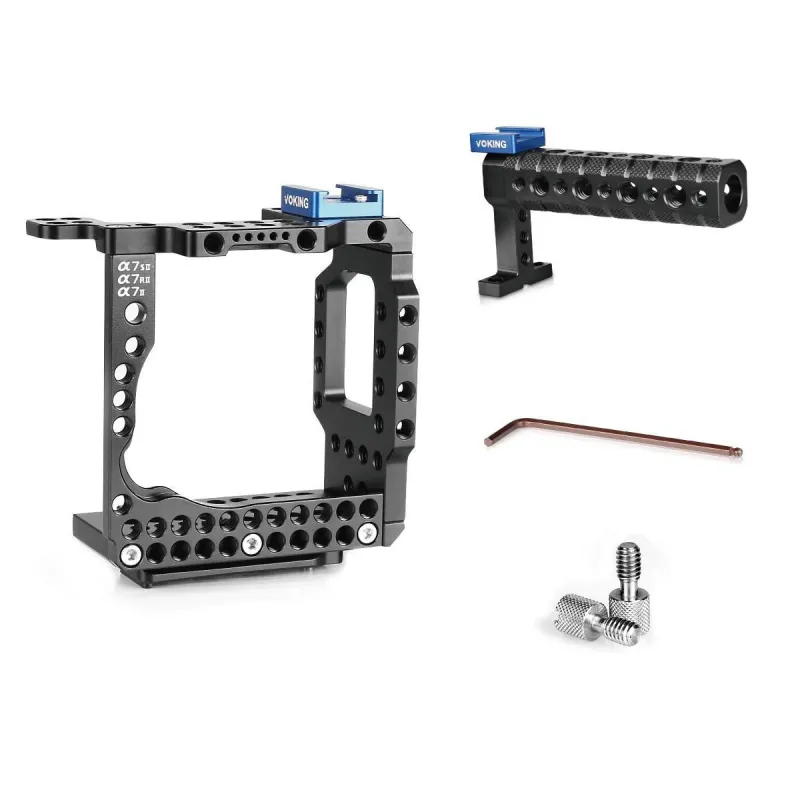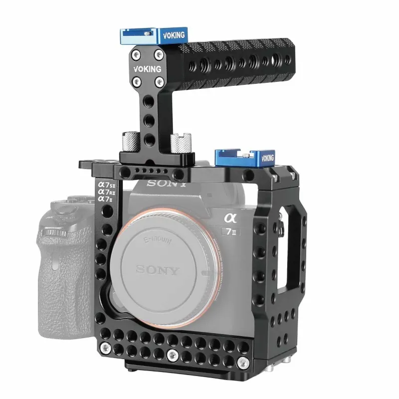 Meike VK-A7IIK Vedio Cage Meike VK-A7IIK Vedio Cage ir īpaši izstrādāts Sony A7 II, A7R II un A7S II kamerām. Tas novērš kustību izplūšanu, ko izraisa vibrācijas vai kratīšanās uzņemšanas laikā. Tas padara jūsu ierakstus stabilākus, skaidrākus un profesionālākus. Komplektā iekļautais augšējais rokturis nodrošina papildu komfortu. Konfigurējiet pēc saviem ieskatiem Režģa būrīti var komplektēt pēc saviem ieskatiem, pievienojot piederumus, piemēram, papildu aukstā kurpja stiprinājumu vai burvju roku. Kameras būris ir ergonomiski veidots, lai jūs varētu ērti uzņemt skaistākos videoklipus.