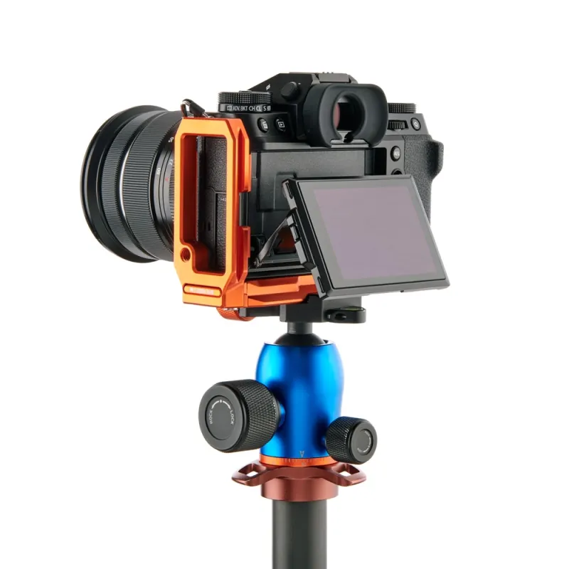 Šis vieglais, anodētais L kronšteins ir īpaši izstrādāts, lai perfekti atbilstu X T5s formām, un nodrošina piekļuvi akumulatora durtiņai un sānu portiņām lietošanas laikā. Izgriezumi vertikālā pozīcijā nodrošina piekļuvi jostas stiprinājumam un ļauj viegli atvērt un noliekt aizmugurējo ekrānu. Tas ietver arī adapteri, lai izmantotu Peak Design Capture klipu sistēmu (v3). Izvelkamā pamatne ļauj piesiet portreta režīmā.,