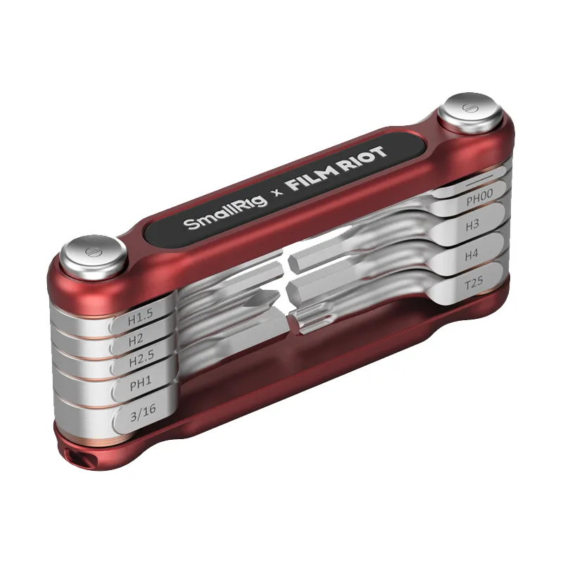 The SmallRig x FILM RIOT 10 in 1 Detent Folding Multi Tool Kit (Red) 4813 is specially designed for photo and video makers. The 10 in 1 kit has a folding design that ensures portability and convenience, and is suitable for commonly used key sizes in the photo and video industry.