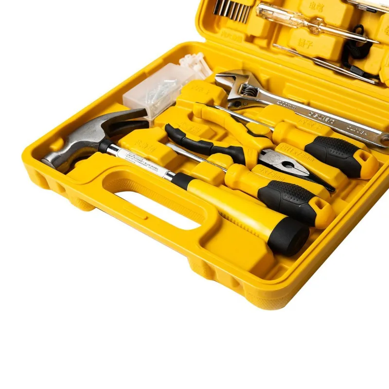 An adjustable wrench and a carpentry hammer are included in the set. The wrench is corrosion-resistant and easy to use, while the hammer is sturdy and comfortable to handle.