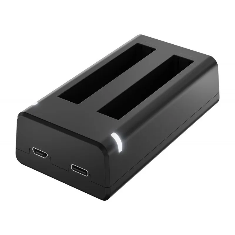 Lādētājs ir savietojams ar INSTA360 ONE X3 sistēmas akumulatoriem, NEWELL zīmola akumulatoriem un citiem aizvietotājiem. Specifikācija barošanas avots: 5 volti; min 2,1 ampērs lādēšanas strāva: 4,4 volti; 750 mA (x2) lādētāja izmēri: 8 x 4,5 x 2 cm svars: 40 g (bez kabeļa) Savietojamība IS360X3B baterijas Insta360 ONE X3 Komplekta saturs lādētājs USB - micro USB barošanas kabelis (nav iekļauts barošanas adapteris).