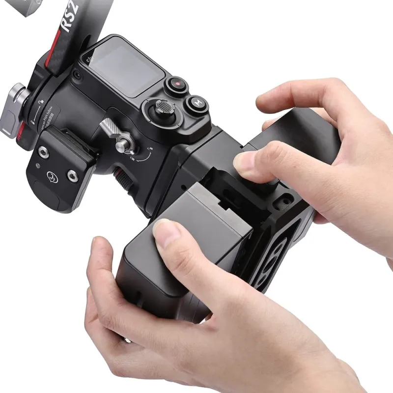 Suitable for L series batteries. Has two 1/4 20 holes and a single 3/8 16 hole Compatible only with the DJI RS2 and DJI RS3 Pro
