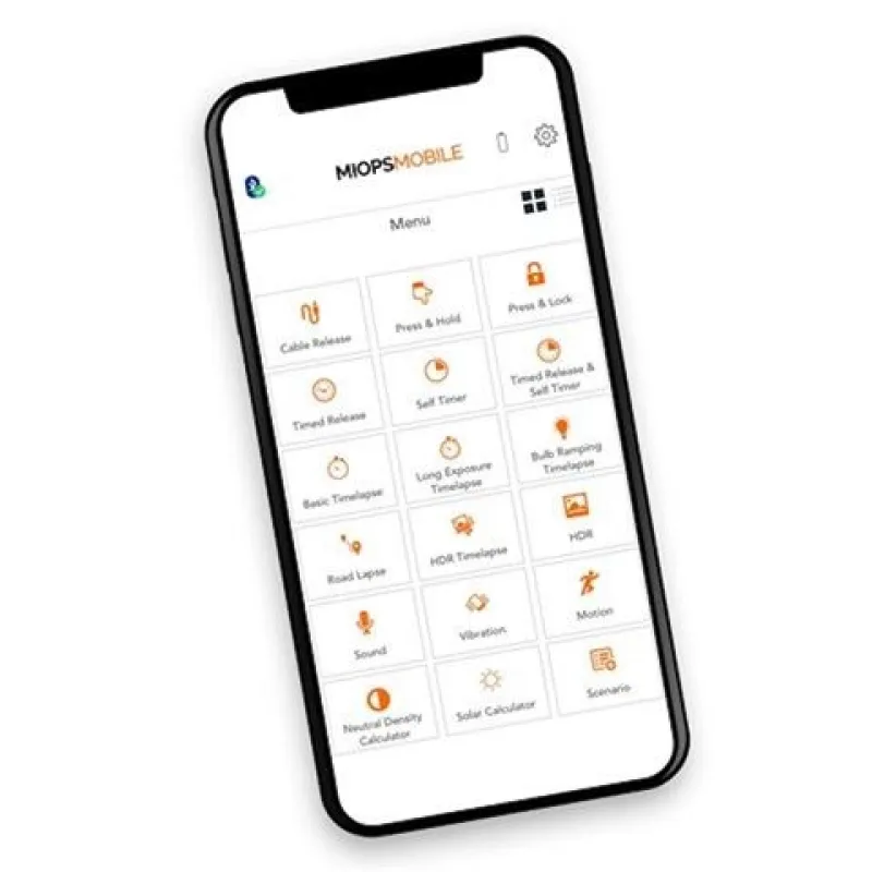 Miops Mobile Remote ir kompakts piederums, kas ļauj bezvadu režīmā savienot iOS vai Android viedtālruni ar digitālo spoguļkameru vai sistēmas kameru. Pēc tam varat izmantot Miops Mobile lietotni, lai iedarbinātu kameru vairāku desmitu metru attālumā. Šim nolūkam tiek izmantots energoefektīvs Bluetooth 4.0, tāpēc var izmantot arī viedtālruņus bez 3,5 mm porta (iPhone X / Google Pixel). Mobilo tālvadības pulti var novietot uz kameras uzgaļa. Turklāt apakšpusē ir arī 1/4" iekšējā vītne.