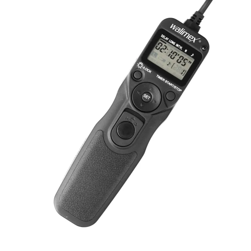 The walimex LCD Digital Timer Remote is a professional grade time device designed for precise control over scheduled shutter release, exposure length, frequency and many more functions. It provides delayed shutter release to the second, intermittent release, time exposure and continuous shooting to preset limits. The time can be preset from 1 second to 99 hours. Settings can be seen on the LCD screen, which can be illuminated.