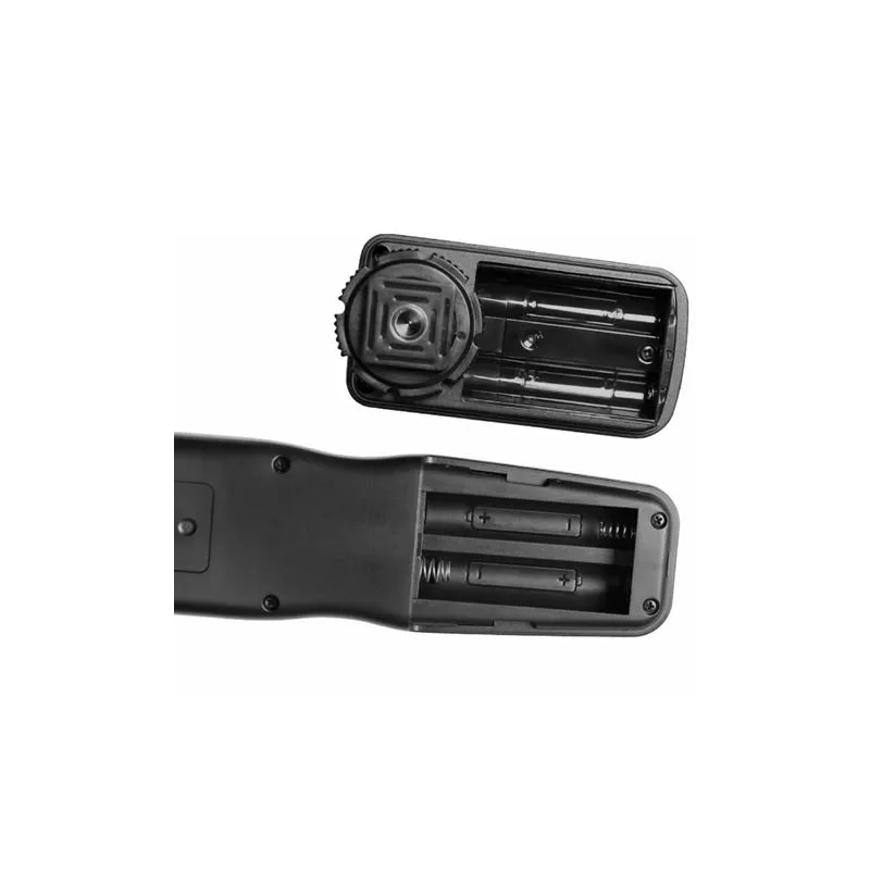 To use the remote control, insert the AAA batteries into the transmitter and receiver compartments. To use the remote control wirelessly, turn on the receiver. Then place the receiver on the hotshoe of your camera, or optionally on a tripod. You can also use the transmitter without the receiver, by attaching the transmitter to your camera using the supplied cable. In the clear menu of the transmitter you can easily determine the mode you want to use. The transmitter has an auto-shutdown function after 30 minutes; the receiver does not switch off automatically.