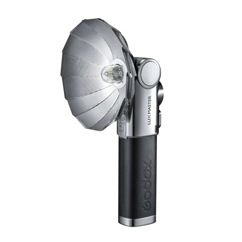 The Lux Master accommodates interchangeable reflectors for versatile lighting effects, with options to adjust parameters like aperture and ISO.