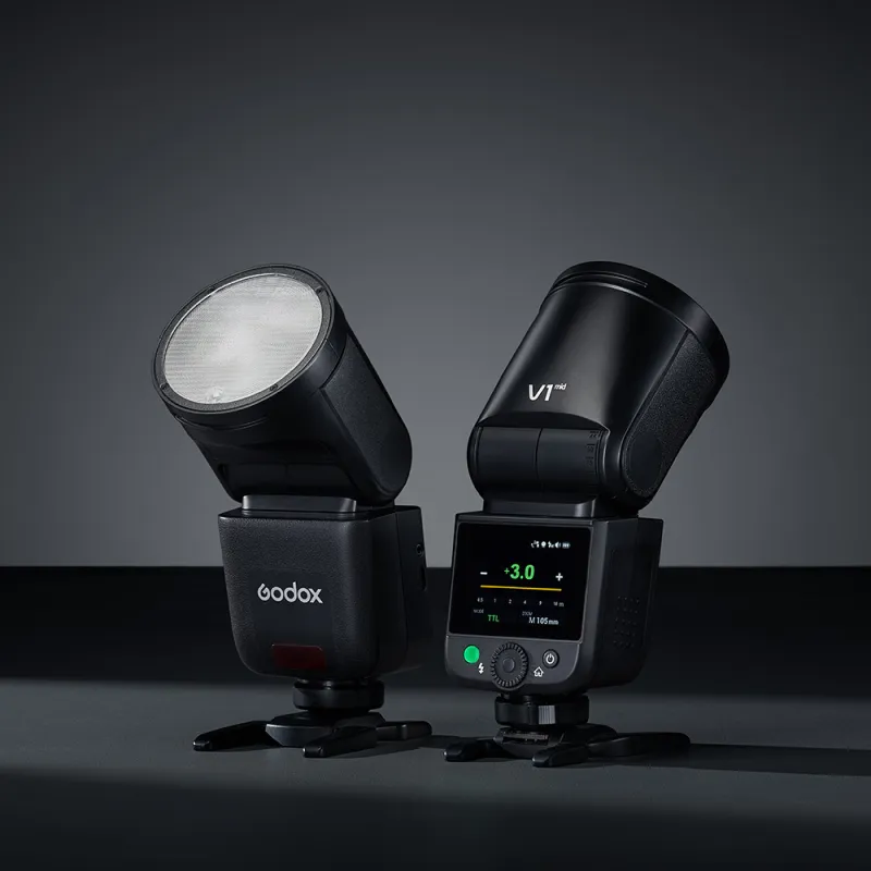 Godox Speedlite V1 Mid Sony ir profesionāla zibspuldze ar kompaktu dizainu un izsmalcinātu gaismas kvalitāti.