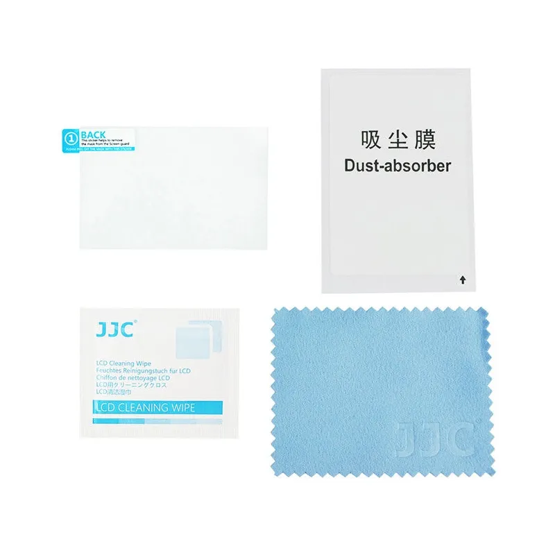 The JJC GSP-77D LCD Protector protects the display of your Canon EOS 77D SLR camera from scratches, dust, fingerprints and other dirt. The screen protector is specially tailored for this camera's display. The screen protector is easy to apply and remove. The material has a high light transmission and reflects minimally. All information on the screen therefore remains clearly visible.