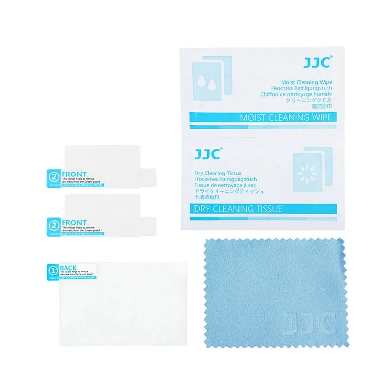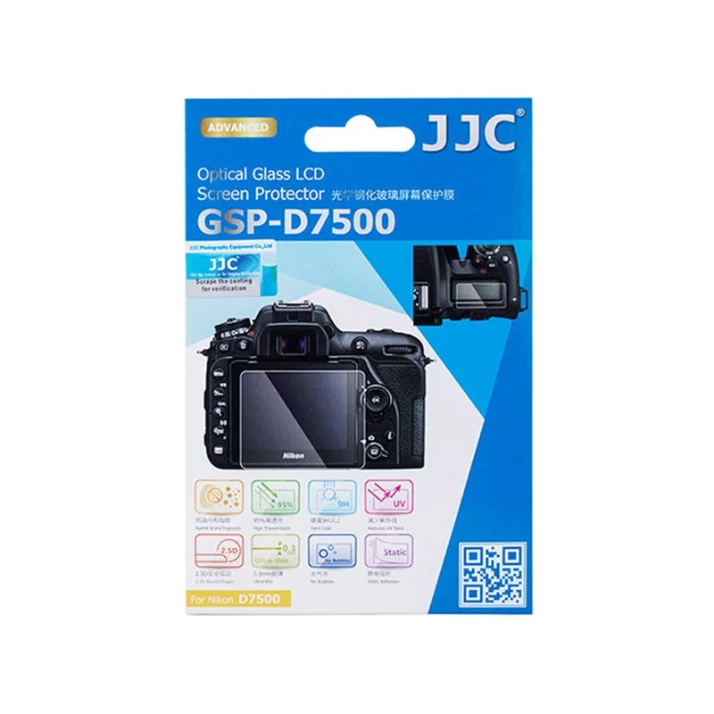 JJC GSP-D7500 optiskā stikla aizsargs Nikon D7500 JJC GSP-D7500 optiskā stikla aizsargs Nikon D7500 ir tikai 0,5 milimetrus biezs īpaši plāns optiskā stikla slānis, kas aizsargā jūsu kameras LCD displejus. Pateicoties tā 95% gaismas caurlaidībai, jūs saglabāsiet labu ekrānos redzamās informācijas un attēlu redzamību. Optimāla aizsardzība Daudzslāņu stikla aizsargs pasargā displejus no netīrumiem, skrāpējumiem, sviedriem, taukiem un pat krāsas maiņas, ko izraisa ilgstoša gaismas iedarbība. Stikls arī bloķē UV starus, vienlaikus ļaujot cauriet redzamās gaismas spektram. Viegli piestiprināms Optiskais stikla aizsargs ir viegli piestiprināms, zem virsmas neveidojot gaisa burbuļus, un tikpat viegli atkal noņemams. Pateicoties statiskai piestiprināšanai, uz ekrāniem nepaliek kaitinošas līmes paliekas. Komplektā ir iekļauti tīrīšanas līdzekļi, lai pirms aizsarga uzlikšanas ekrāni būtu pēc iespējas tīrāki.