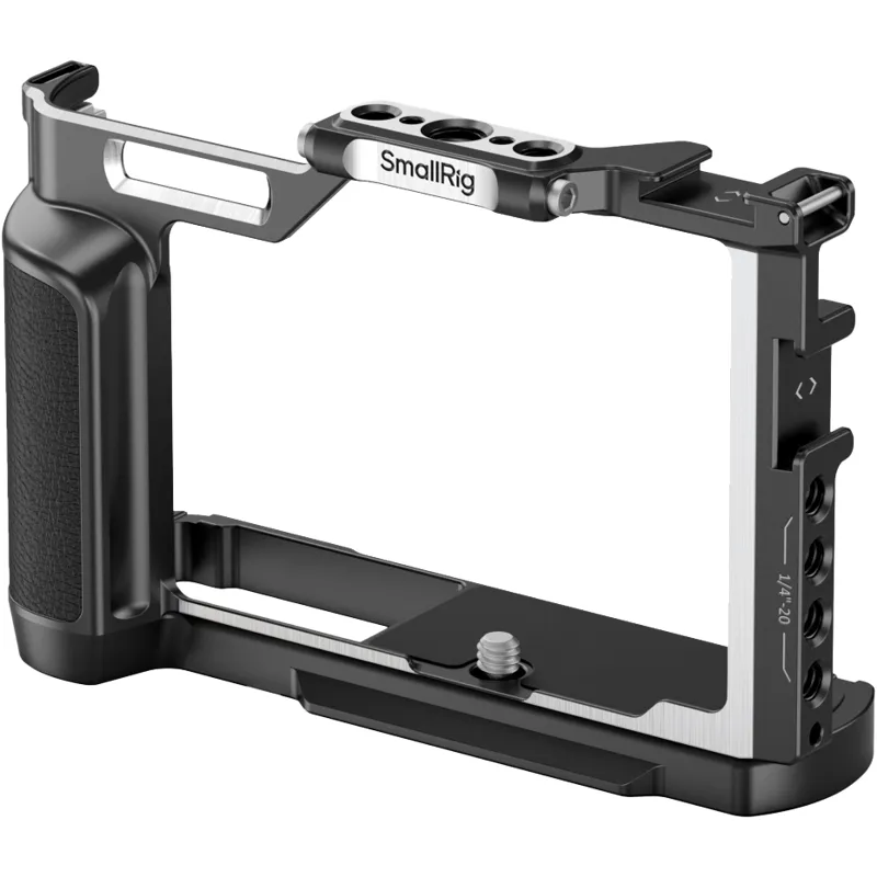 Sprosts ir nostiprināts ar 1/4"-20 skrūvi apakšā un sānu fiksatoru labajā pusē, un vairākās vietās tam ir iebūvētas silikona starplikas, lai novērstu korpusa saskrāpējumus.
