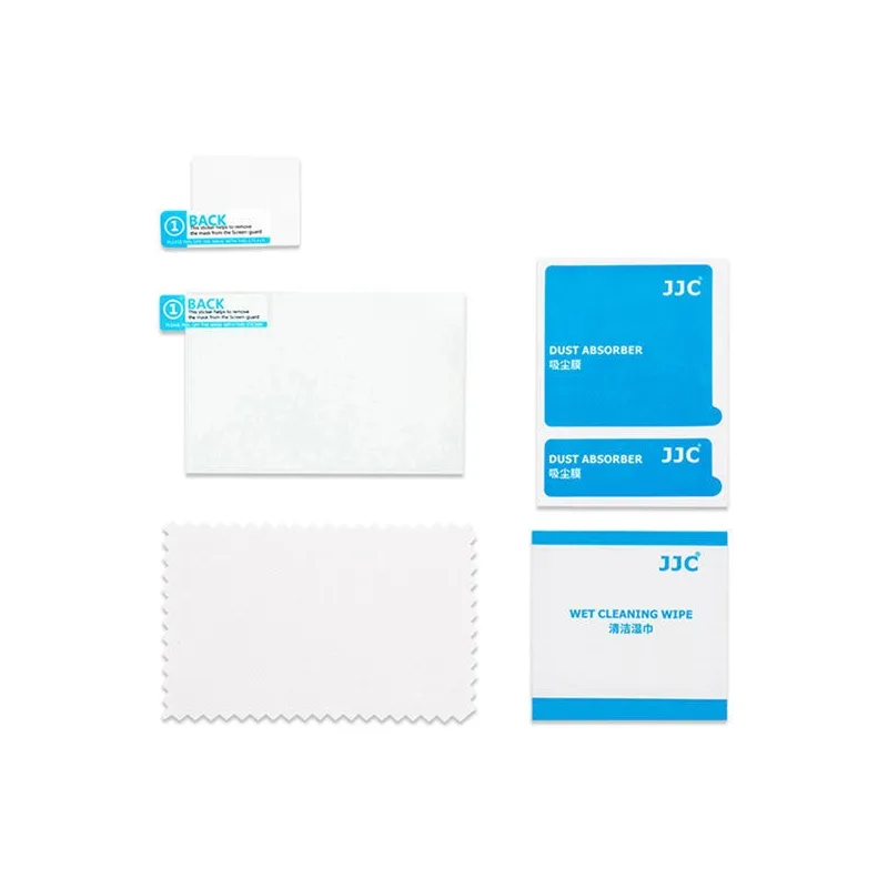 JJC GSP-X100V optiskā stikla aizsargs Fujifilm X100V JJC GSP-X100V optiskā stikla aizsargs ir īpaši plāns optiskā stikla slānis, kura biezums ir tikai 0,3 milimetri, lai aizsargātu jūsu kameras LCD displeju. Pateicoties tā 95% gaismas caurlaidībai, jūs saglabājat labu ekrānā redzamās informācijas un attēlu pārredzamību. Optimāla aizsardzība Daudzslāņu stikla aizsargs aizsargā displeju pret netīrumiem, skrāpējumiem, sviedriem, taukiem un pat krāsas maiņu, ko izraisa ilgstoša gaismas iedarbība. Stikls arī bloķē ienākošo UV gaismu, vienlaikus ļaujot caur to iekļūt redzamās gaismas spektram. Viegli piestiprināms Optiskā stikla aizsargs ir viegli piestiprināms, zem virsmas neveidojot gaisa burbuļus, un tikpat viegli atkal noņemams. Pateicoties statiskai piestiprināšanai, uz ekrāna nepaliek kaitinošas līmes paliekas. Komplektā ir iekļauti tīrīšanas līdzekļi, lai pirms aizsardzības uzklāšanas jūsu displejs būtu pēc iespējas tīrāks.