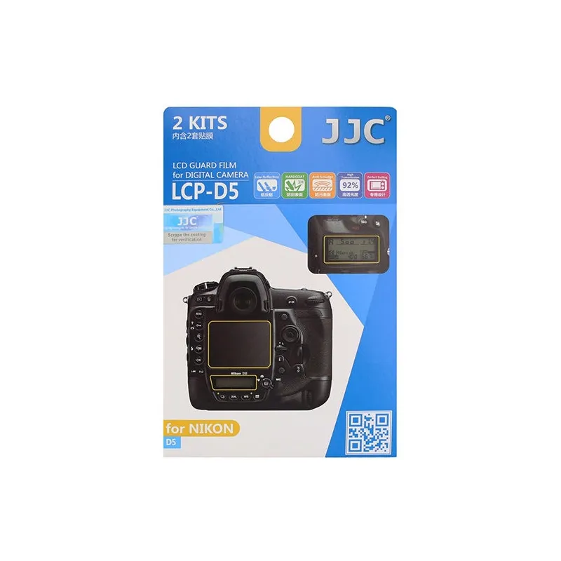 JJC LCP-D5 LCD ekrāna aizsargs JJC LCP-D5 LCD ekrāna aizsargs aizsargā jūsu Nikon D5 spoguļkameras displeju no skrāpējumiem, putekļiem, pirkstu nospiedumiem un citiem netīrumiem. Ekrāna aizsargs ir īpaši pielāgots šīs kameras displejam. Plēvi ir viegli uzlikt un atkal noņemt. Materiālam ir augsta gaismas caurlaidība, un tas minimāli atstaro gaismu. Tāpēc visa informācija uz ekrāna paliek skaidri redzama.