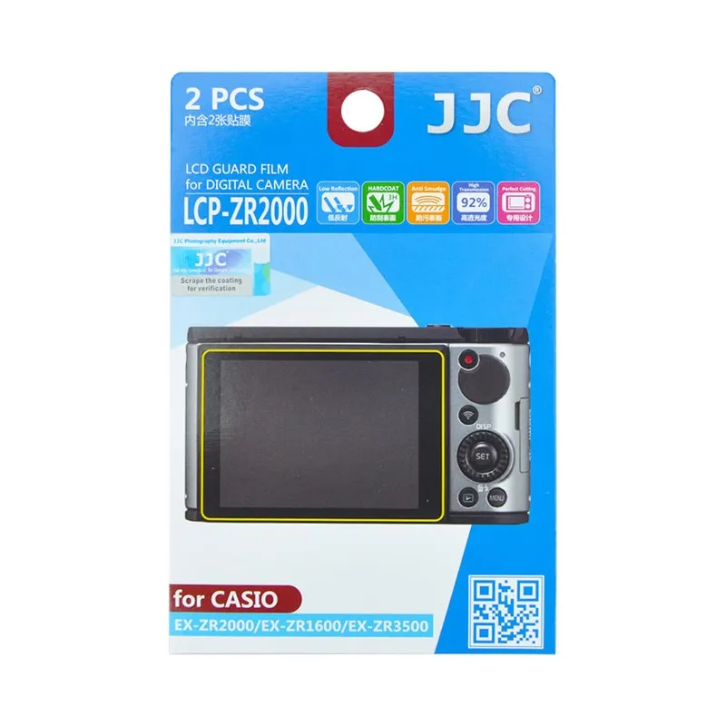 JJC LCP-ZR2000 ekrāna aizsargs JJC LCP-ZR2000 ekrāna aizsargs aizsargā jūsu Casio EX-ZR3500, EX-ZR2000 vai EX-ZR1600 kompaktkameras displeju no skrāpējumiem, putekļiem, pirkstu nospiedumiem un citiem netīrumiem. Ekrāna aizsargs ir īpaši pielāgots šīs kameras displejam. Foliju ir viegli ievietot un noņemt. Materiālam ir augsta gaismas caurlaidība, un tas minimāli atstaro gaismu. Tāpēc visa ekrānā redzamā informācija paliek skaidri redzama.