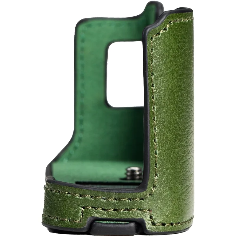 Izturīgais un elpojošais pusapvalka ādas materiāls bagātina fotokameras retro estētiku un sajūtu, savukārt tā zamšādas odere nodrošina aizsardzību pret skrāpējumiem.